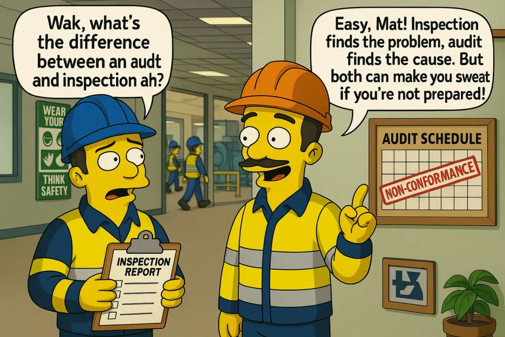 Boleh dikatakan ramai pegawai dan kakitangan keselamatan, kesihatan pekerjaan dan alam sekitar masih tidak tahu apa itu audit dan apa itu pemeriksaan (inspection). Malah ramai yang menggunakan pendekatan pemeriksaan dalam audit. Ini menyebabkan banyak kekeliruan dan masalah terutamanya masa banyak dibazirkan dalam audit dengan laporan ketidaktepatan/ ketidakakuran (non-conformance) yang terlalu banyak ditumpukan kepada masalah produk/bahan dan sebagainya.